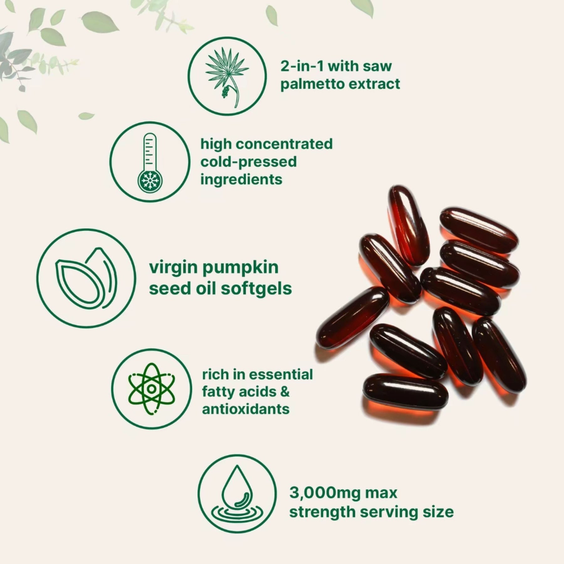 A natural blend of traditional herbal remedies – Pumpkin & Saw Palmetto – to reduce hair loss, stimulate regrowth & strengthen your hair naturally.